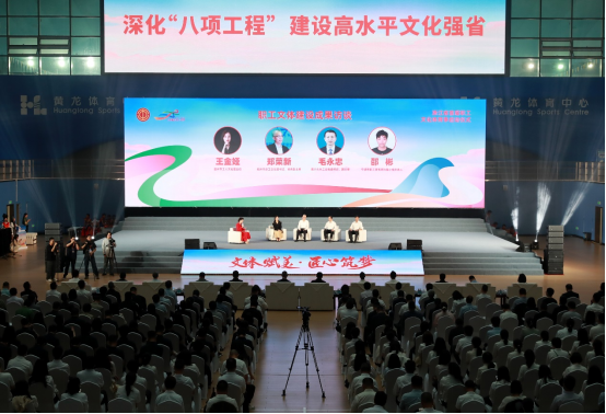 启动仪式上,杭州市总工会、嘉兴市总工会、温州市工人文化宫、宁波市职工羽毛球兴趣小组围绕“文体赋能·助力共富”“点亮阵地·乐享文化”“文化出宫·文艺惠工”“兴趣小团队·闪耀大舞台”等主题进行访谈对话。