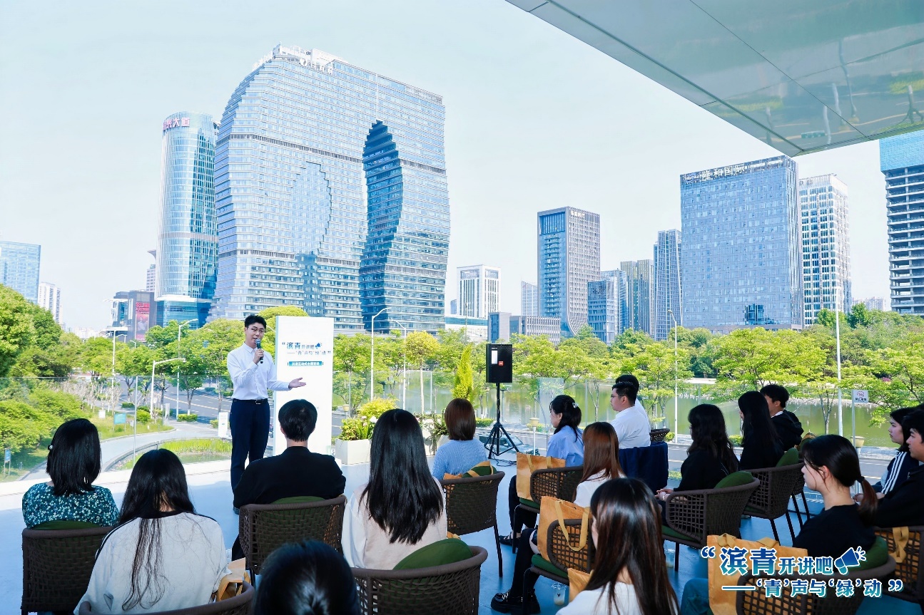 “滨青开讲吧”宣讲员赵文浩率先登场,以杭州亚运会为切口,讲述杭州高新区(滨江)如何在大型赛事中展现生态智慧。紧接着,人工智能产业园的李展鹏揭开楼宇节能的“神秘面纱”,带大家认识到办公楼里的绿色“黑科技”。而大华幼儿园教师施雯则温情出场,讲述如何通过绘本和课堂,把绿色种子种进孩子的心田。