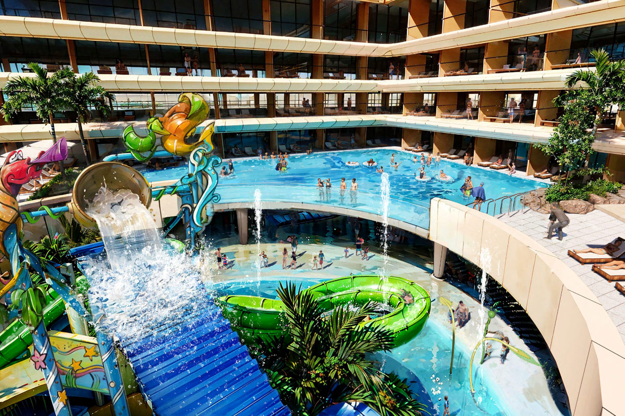 除马戏板块外,园区配套的亲子度假酒店突破传统设计,首创浙南闽北800平方米泳池私享房,楼顶“7”字形空中泳池将休闲空间与城市景观无缝衔接,实现“云端度假”新体验。