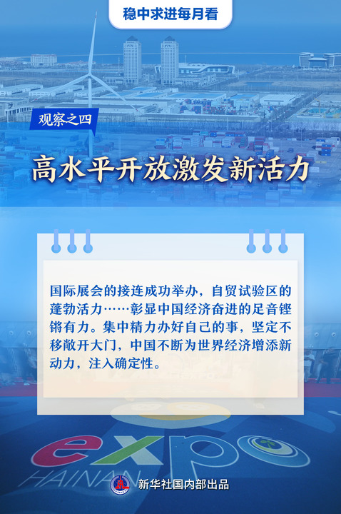 【记者观察】国际展会的接连成功举办,自贸试验区的蓬勃活力……彰显中国经济奋进的足音铿锵有力。集中精力办好自己的事,坚定不移敞开大门,中国不断为世界经济增添新动力,注入确定性。
