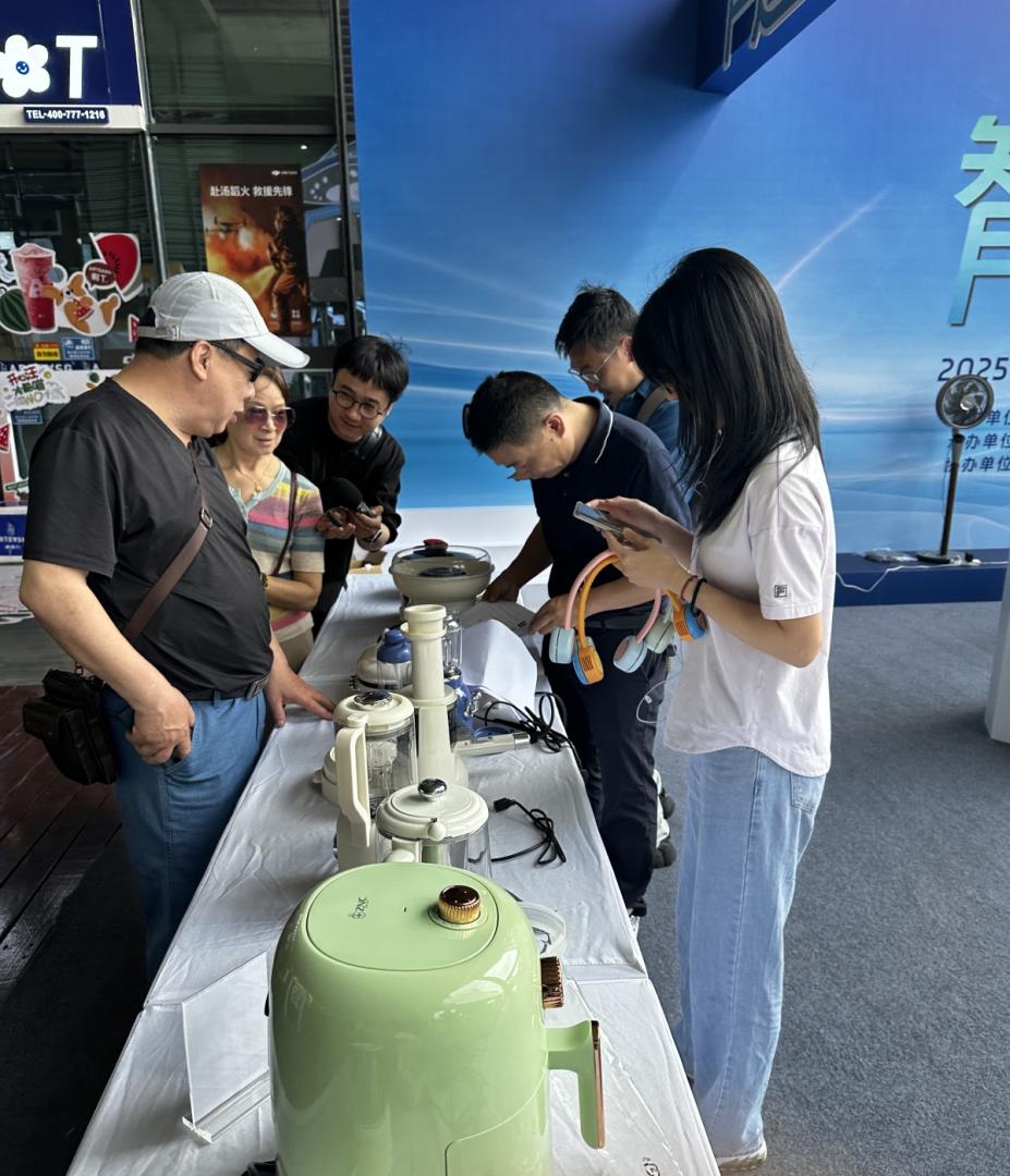 ECX(慈溪市斯泊林电器有限公司)则带来了琳琅满目的厨房小家电——空气炸锅、煎饼机、破壁机、咖啡机等等,引来了不少市民的围观。