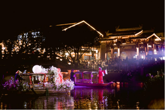 夜幕降临,华灯初上。走进龙湾寺前街,人潮涌动,热闹非凡——江湖码头化身奇幻舞台,电音DJ碰撞雅韵古筝,惊鸿舞者踏浪而来,京瓯古调与流行金曲时空对话,声光电交织的视听盛宴点亮了夜空。五一期间,热门老街寺前街以“盐海星河・见古见今”为主题,打造沉浸式水韵音乐大赏。