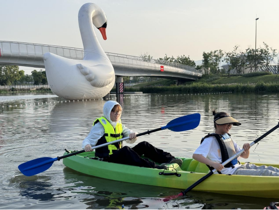 眼健康科普馆内,“护眼美食家”“草药大作战”等趣味护眼展项寓教于乐;追风水上运动中心25000平方米的水域里,群众们划着桨板,或享受湖面的宁静,或体验“速度与激情”……作为浙南眼健康产业高地,眼谷小镇五一期间推出“科技+文旅”的融合亲子游体验,单日接待量超1万人次。