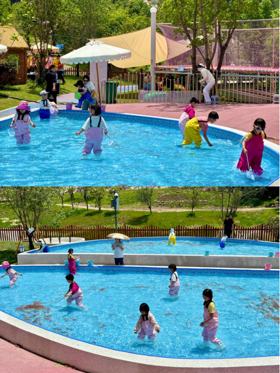 露营基地里,人们围坐在全自助烧烤架旁,四周依山傍水,惬意无比;“叽叽喳喳”游乐园里,“摸鱼节”火热来袭,小朋友们穿着“摸鱼服”在水花四溅中追逐灵活的鱼儿,尽享童趣与夏日清凉……
