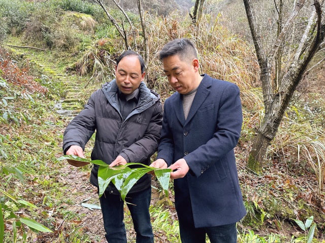 派驻结对村的“第一书记”实地走访箬叶示范种植基地。
