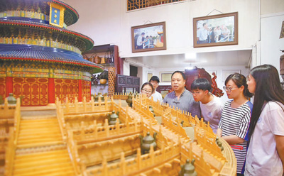 “作品《天坛》工艺很复杂,既要了解古建筑的造型及结构,又要掌握浮雕、圆雕等雕刻技术和彩绘本领。”刘毅说,从设计图纸、制作模型,到选材、劈篾、编织、上色、上漆,再到防霉防蛀处理和拼装,刘毅和家人及10多名工人,花了差不多1年才完成。