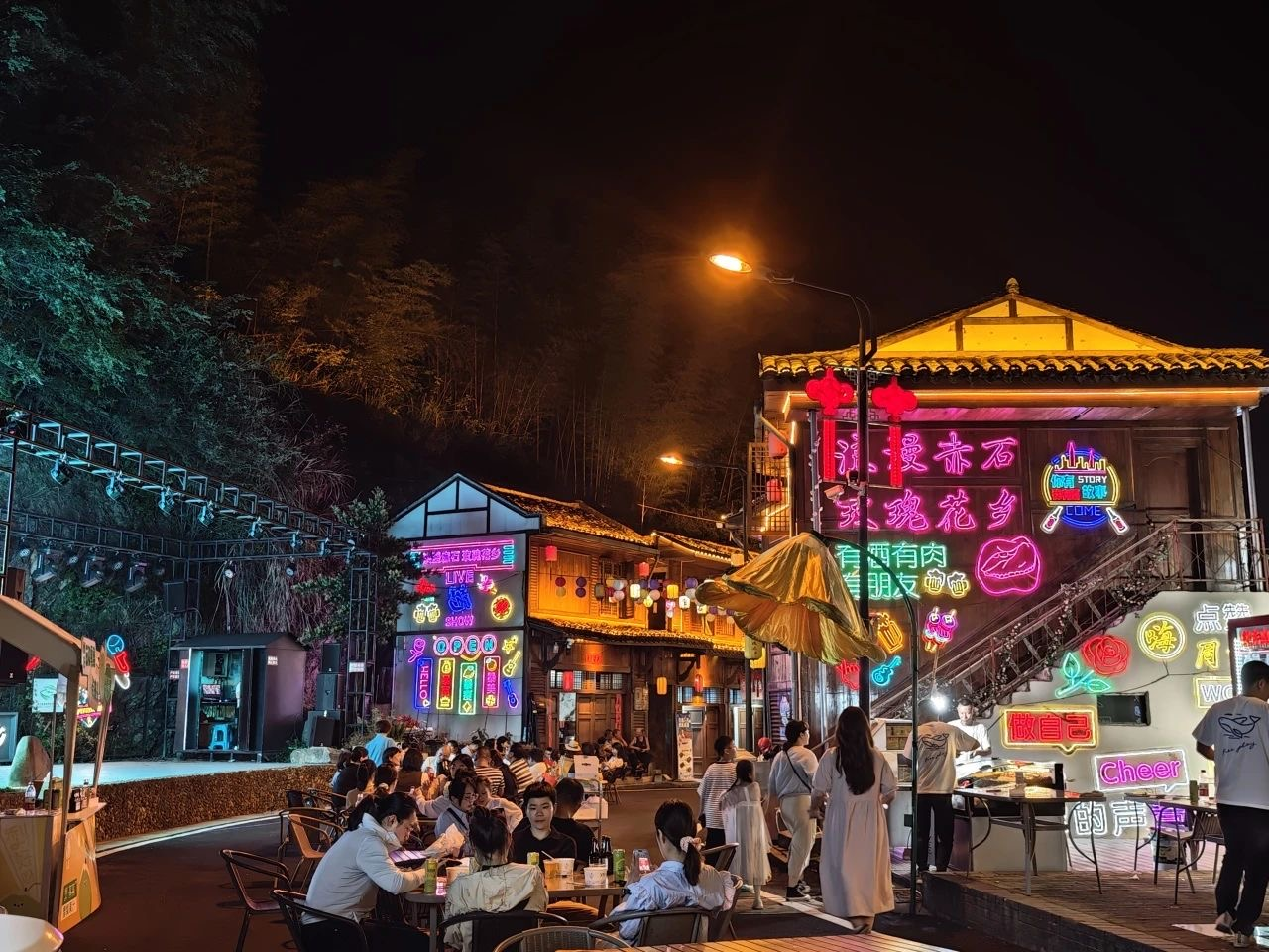 当夜幕降临,赤石“嗨周末”文化街变得热闹非凡,一场音乐会上演。游客们跟随着节奏摇摆,欢呼声、歌唱声此起彼伏,沉浸在这场音乐会编织美梦中。通过举办一系列的有趣活动,不仅丰富了游客的假期生活,还为村集体带来了可观的收入。村民们真切地感受到了发展带来的变化。