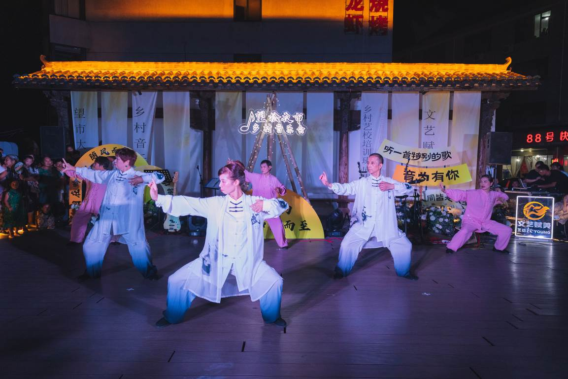 去年8月,在望松街道望松村文化礼堂外广场上,一声嘹亮的“我家住在黄土高坡”划破夜空,金家兰与“同学们”踩着《黄土高坡》《中国红》的动感节奏激情起舞。这场融合夜市开市的文艺会演,成为乡村艺校学员的“首秀”。