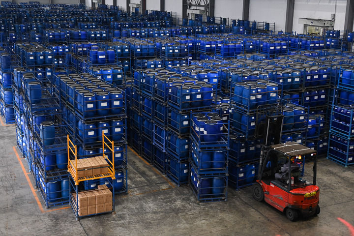 传化集团旗下传化化学大江东基地的产品仓库(2024年2月28日摄)。新华社记者 黄宗治 摄