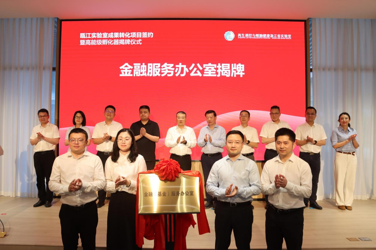 当天,瓯江实验室金融(基金)服务办公室、瓯江实验室生命健康高能级孵化器、瓯江实验室生物信息数据服务(温州)有限公司三大平台正式揭牌,标志着瓯江实验室在成果转化领域迈出关键一步,走向“科技-产业-金融”一体化创新生态。