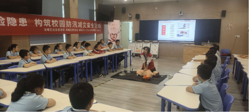 海曙区应急管理局以“教育一个孩子、带动整个家庭”为理念,联合区教育局、区红十字会、横街镇等单位在海曙区横街镇中心小学开展“防灾减灾日”集中科普宣传活动。在活动中,专业老师围绕“遇到地震该如何保护自己”这一主题,现场示范地震时的正确防护姿势,并手把手指导同学们在疏散过程中如何保护头部、避免踩踏事故。此外,还利用模拟人教具演示心肺复苏、止血包扎等急救操作,将复杂的防灾减灾知识转化为可感知、可操作的安全技能,为同学们上了一堂生动且实用的“安全课”。