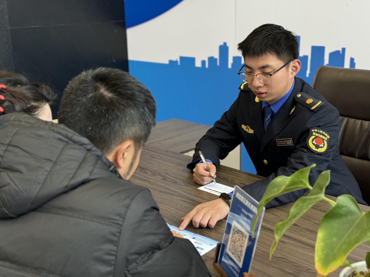 平阳县综合行政执法局执法人员现场受理“预约式”指导服务申请。