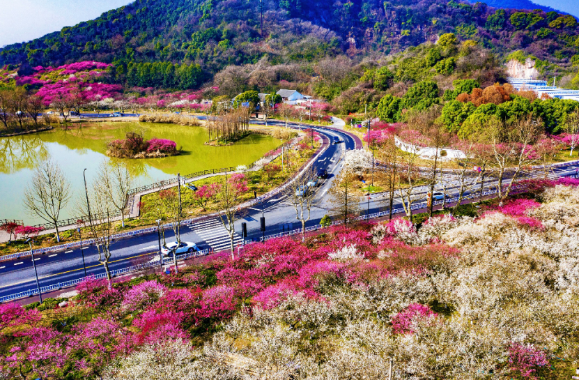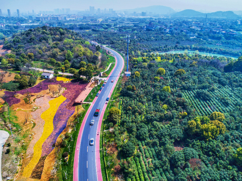 对过往行人和游客来说,这不仅是一条交通要道,更是一条景观之路。以大超山景区为依托,超山环线运用“借景”手法,将道路两侧的乡村、田园等文化和自然资源纳入“美丽公路”的视线范围,全力打造“畅安舒美”的路域环境。