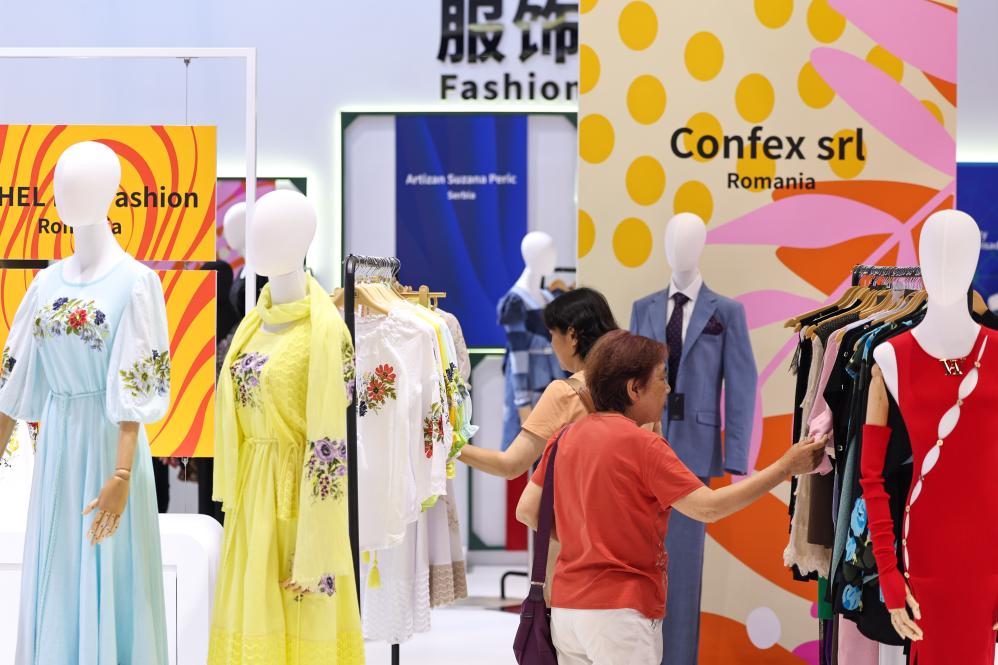 5月22日,观众在第四届中国-中东欧国家博览会暨国际消费品博览会现场参观服饰展区。新华社记者 江汉 摄