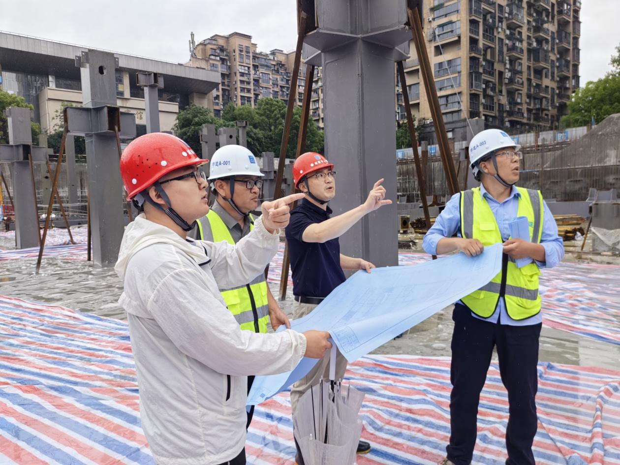 自从进入汛期以来,每周到全民健身中心项目问需求、送服务,已成为浙江丽水龙泉市城市开发建设中心责任领导和联系干部陈升的日常工作之一。5月21日是城建中心规定的“周三项目服务日”,他们又冒雨来到项目工地,仔细核查防护措施并对后续施工节点进行推演。