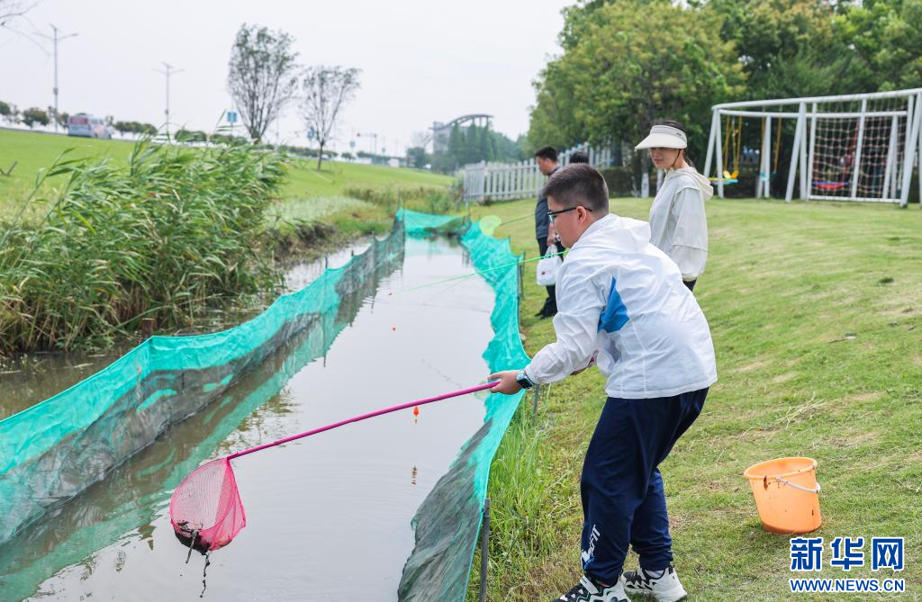 5月24日,游客在幻溇村清野休闲营地钓小龙虾。