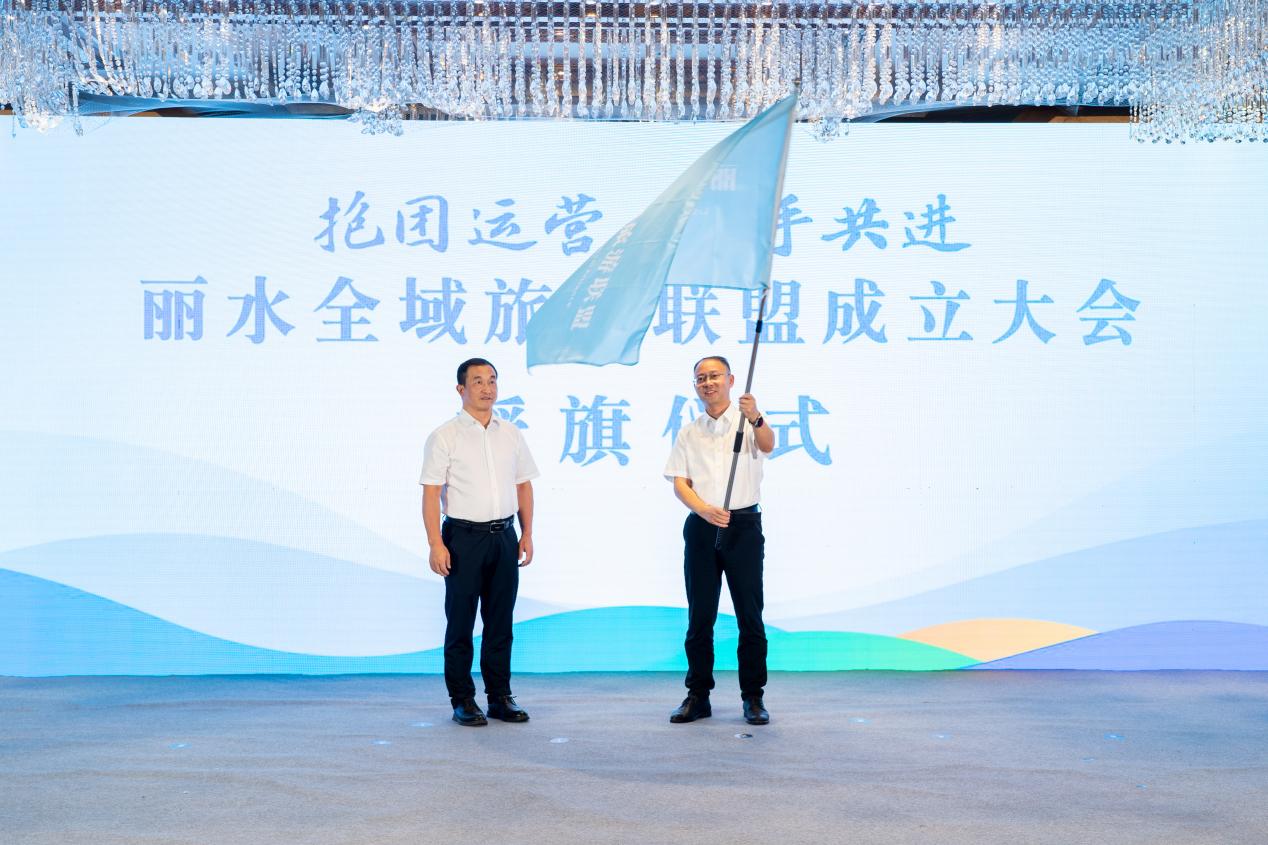 会议举行了授旗仪式。丽水全域旅游联盟的会员们齐聚一堂,共同见证了联盟成立。