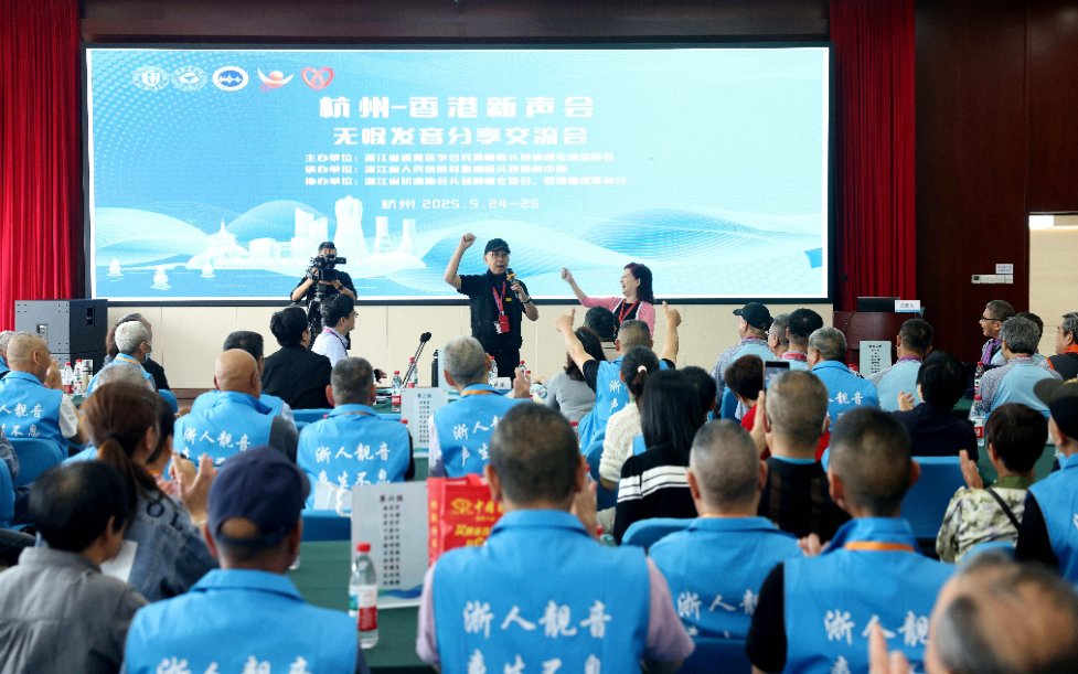 5月24日,杭州-香港新声会无喉发音交流分享会在浙江省人民医院举行,来自黑龙江、新疆、北京、广西以及省内等100多位患友参加培训。