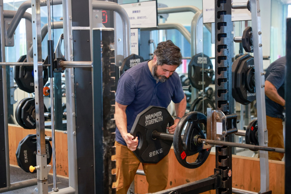 SANDOVAL DAN在海康威视园区配套的健身房体验健身器材。