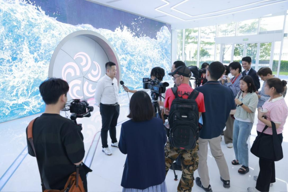 活动首日,外媒团先后走进大丰科创中心和直播电商公司交个朋友,在展厅和直播间里近距离参观、了解企业的自主研发技术与现实应用。而企业如何应对机遇与挑战,是首日行程里外媒最关心的话题。