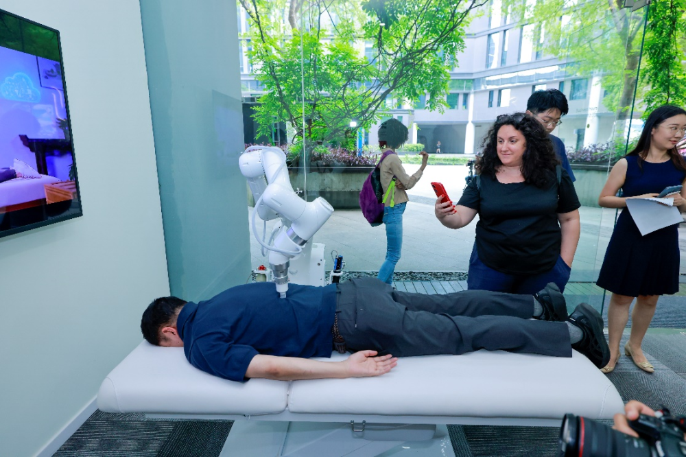 在体验完网易伏羲机器人按摩后,日本《东京新闻》驻中国总局长、记者石井宏树笑着分享道,体验机器人按摩的经历很神奇,力度掌握得很好,按得位置也很精准,整体感觉很舒服。