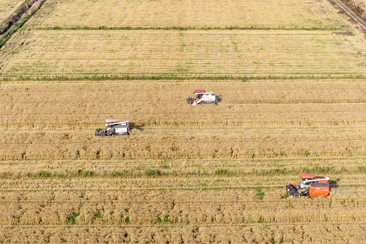 全国“三夏”大规模小麦机收全面展开。记者在河南、山东、浙江、江苏等地看到,收割机开足马力驰骋在麦田中,一排排小麦被整齐地切割、脱粒……广袤农田一片繁忙景象。