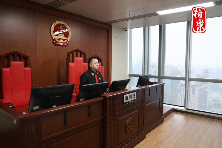 这是广州互联网法院法官开庭审理这起未成年人游戏大额充值案的现场。(广州互联网法院供图)