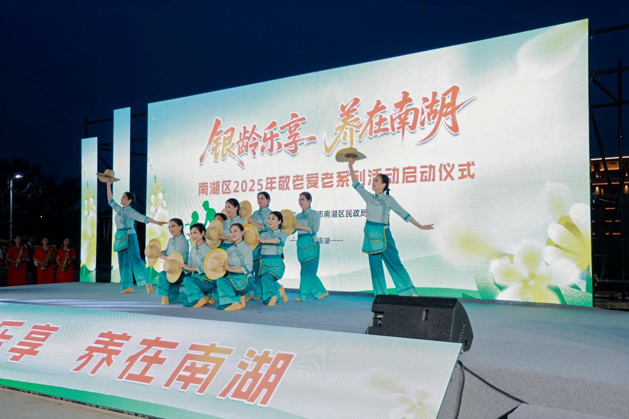 现场还举行了“银龄行动”志愿者出征仪式。来自南湖区11个镇街道的志愿者代表走上舞台,他们佩戴的“银龄行动”标识帽上跃动的“心形”图案象征着对社会的大爱,“99”数字既呼应重阳敬老文化,更寓意志愿精神的长久传承。这些志愿者将继续深入各镇街道,发挥余热,用沉淀半生的智慧与爱,为南湖区写下温暖的注脚。