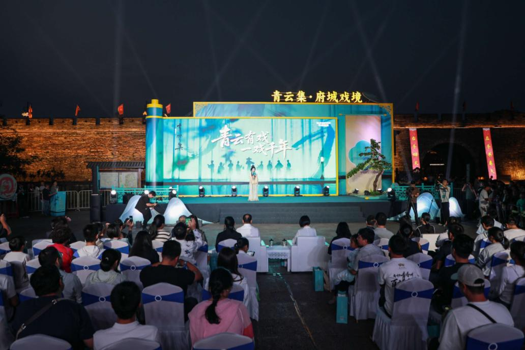 启幕仪式以一场跨越时空的视听对话拉开帷幕。开场舞蹈《青绿》吸人眼球,舞者身着青衫绿袖翩然而出,裙摆随风飘动,水袖在空中划出优美的弧线。《宋韵风云》提前揭晓青云集府城戏境中“宋韵风骨与江湖侠气”的交融之美,给现场观众带来了一场视听盛宴。