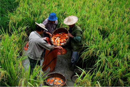 2024年,青田县稻鱼共生系统面积7.01万亩,其中水稻平均亩产480公斤,田鱼平均亩产29.5公斤,全县稻鱼产业总产值达3.4亿元,同比增长11.84%。