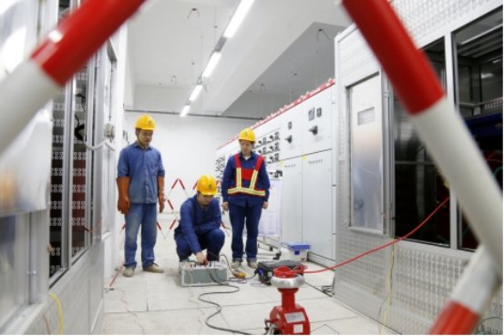 近日,杭州国际博览中心二期建设工程(20kV供配电工程)施工现场,浙江中新电力工程建设有限公司承装分公司第二项目部工人们正忙碌且有序地开展作业。项目负责人王依琳带领团队,对高低压开关柜开展耐压试验作业。作为电气设备投运前的重要检测环节,该试验通过模拟极端电压环境,精准排查设备绝缘性能隐患,为后续安全运行提供保障。