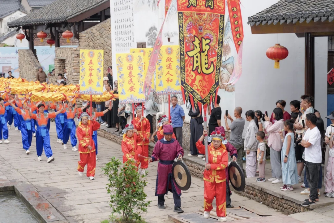 6月6日至7日,“射洋龙民俗大巡游”每日三场贯穿翙岗古村,传统民俗与现代互动交融,再现非遗保护成果。同期开展的“古村漫街奇遇记”将叶浅予《富春人物画谱》搬入现实场景,带领游客穿越时空,感受往昔烟火。