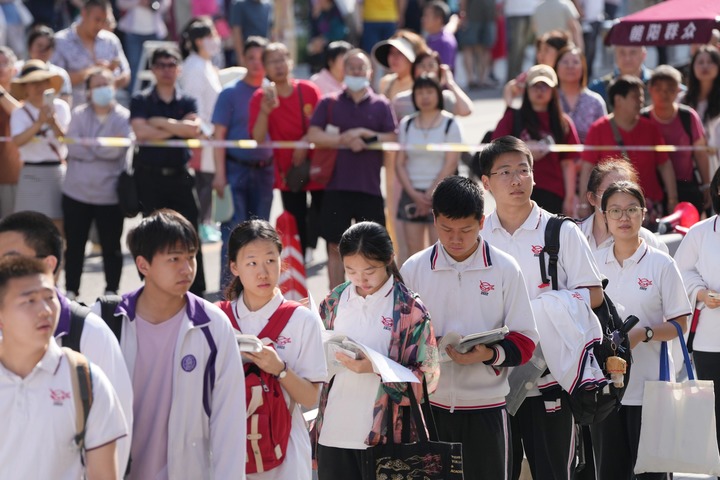 6月7日,在北京市陈经纶中学考点外,考生排队等待进入考场。 新华社记者 鞠焕宗 摄