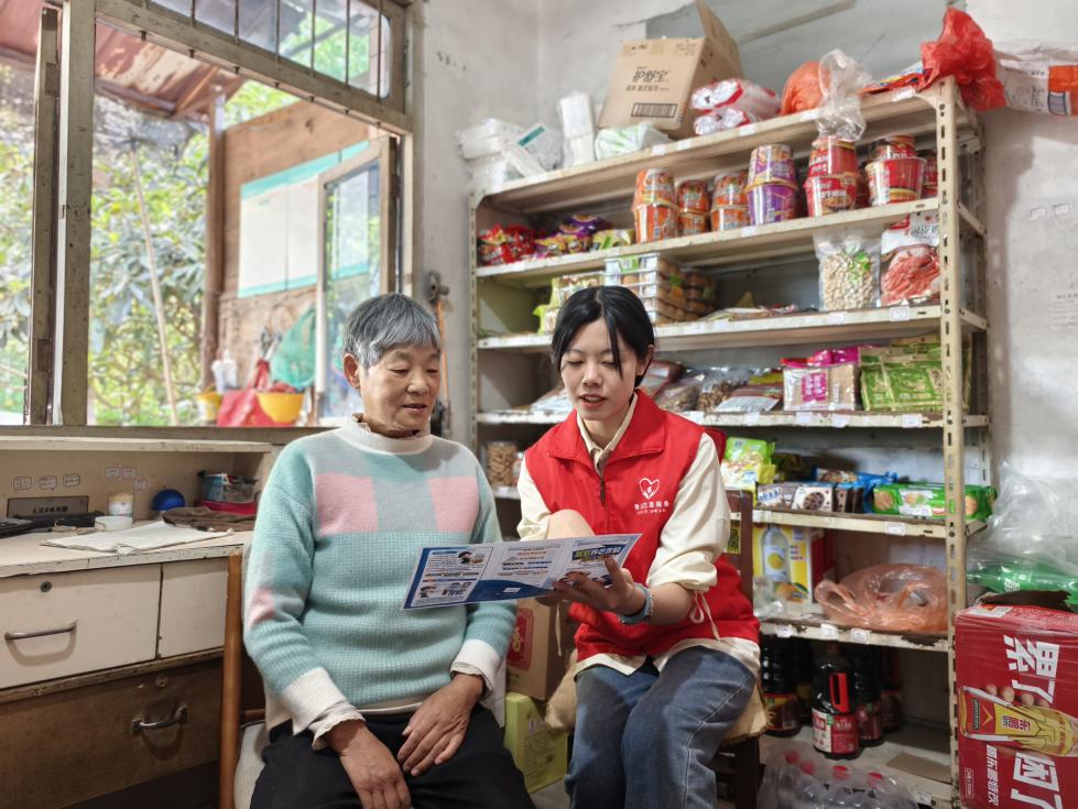 志愿者向老年零售户开展防诈宣传。
