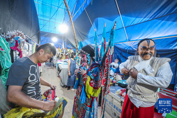 6月17日,演员们在武义后陈村的演出后台准备上场。