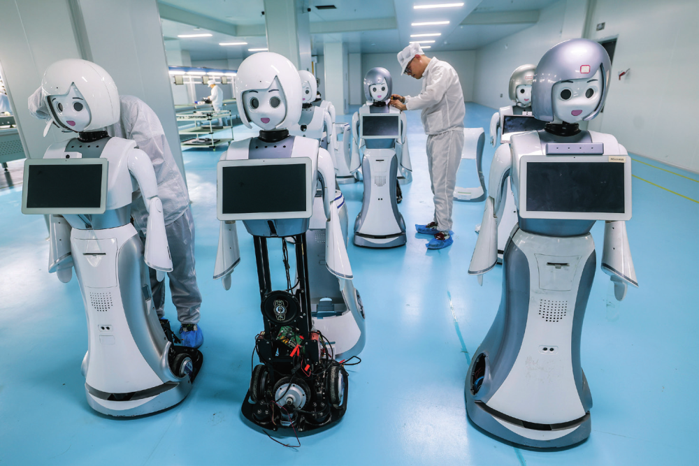 在位于金华市金东区金义新区 的浙江恒东智能科技有限公司机器 人智造中心,工作人员在装配服务 机器人(2025 年 6 月 5 日摄) 徐昱摄 / 本刊