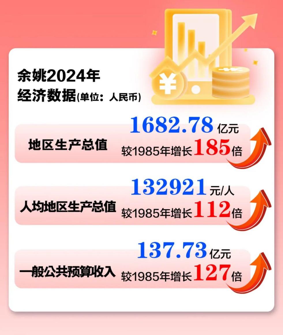 40年,于历史长河不过短暂一瞬,却足以让浙江省宁波余姚市脱胎换骨。自1985年撤县设市以来,一代又一代余姚人在时代洪流中锐意进取,掀起一轮又一轮发展热潮。2024年,余姚地区生产总值、人均地区生产总值、一般公共预算收入分别较1985年增长185倍、112倍和127倍,众多产业从无到有、从有到优、从优到强,实现了“三级跳”。