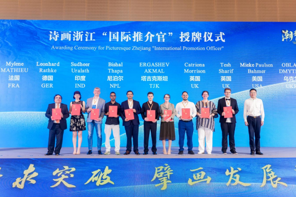 十位来自不同国家和地区的国际友人被授予诗画浙江“国际推介官”称号。随着中国免签“朋友圈”不断扩大,“China Travel”全球圈粉,国际友人作为浙江故事、中国故事的见证者,将继续以自己的独特视角,向世界传播浙江的秀丽山水、人文之韵。