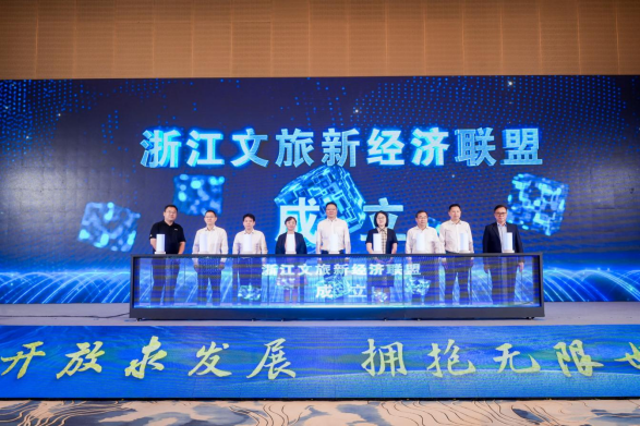 在参会人员的共同见证下,浙江文旅新经济联盟成立,未来浙江文旅将以此为基点,在文旅市场创新发展的赛道上携手各方、并肩前行,共同将“诗画浙江”打造成展现中国文旅创新活力的世界窗口。
