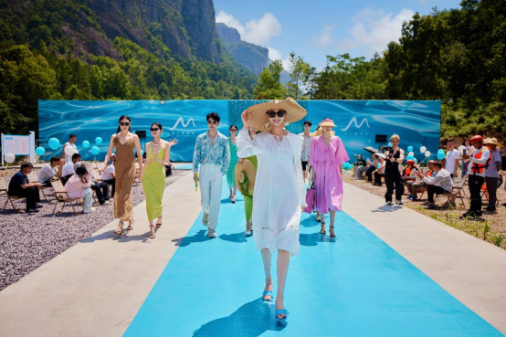 除了漂流本身,美人峰景区还以山水为舞台,推出户外时尚走秀活动,为年轻人提供了沉浸式体验空间。模特身着时尚服饰,在青山绿水的映衬下展现魅力,赋予传统山水全新的文化表达。“这场走秀融合了自然与时尚,很有创意。”一位大学生游客表示。