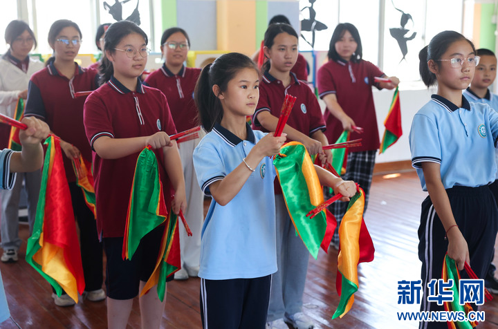 7月1日,东和乡中心学校的孩子们学习筷子舞。