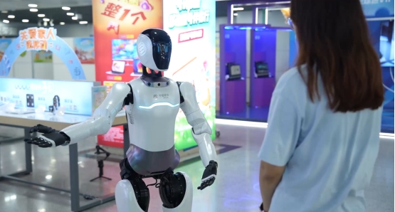 中国移动“灵犀”机器人进入营业厅,旨在优化客户服务流程,有效释放重复人力,实现硅基生命的智能化,打造懂人话、能协作的“群体智能”,让AI做更复杂、更具创造性的事。(黄雨祺/文 中国移动智慧家庭运营中心/供图)