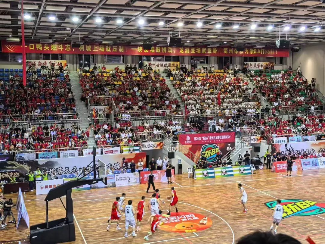 7月12日晚,2025年浙江省城市篮球联赛(衢州古城赛区)柯城主场首轮比赛在衢州职业技术学院体育馆举行。
