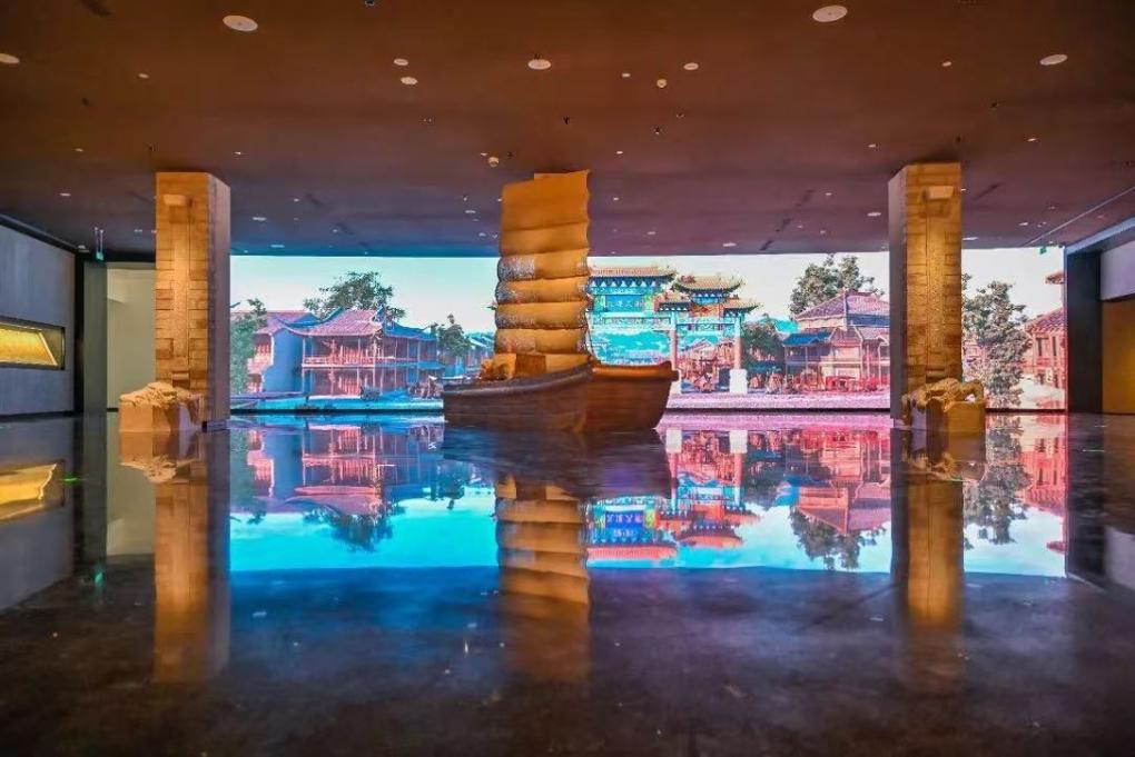 中国京杭大运河博物馆序厅内设有8K超高清大屏幕播放宣传影片。新华网发