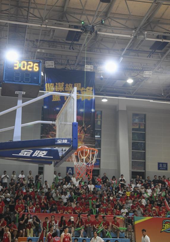 作为本次比赛的主场,赛场内随处可见文成元素。在比赛正式开场前,一项极具科技感与文成特色的环节率先点燃全场热情——由来自文成低空经济领域的专业无人机,执行特别的开球任务。在精准的操控下,无人机沿着规划好的路线,快速且平稳地朝着裁判员飞去,随后将篮球轻轻投放到裁判员手中。这一创新的开球方式,不仅彰显了文成在低空经济领域的探索成果,也让现场观众真切感受到科技与体育赛事融合的独特魅力,纷纷举起手机,记录下这一精彩瞬间。“我第一次在篮球赛现场看到无人机开球这样的开场,很特别很新颖,一下子就把气氛炒热了,感觉接下来的比赛肯定超精彩!”观众包娇娇感叹道。