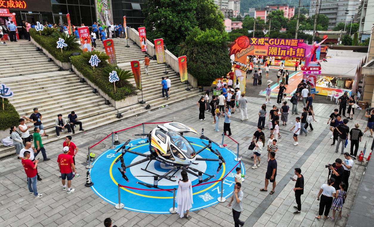 赛场外,文成低空经济元素同样十分亮眼。在体育馆入口处,停放着一架亿航智能EH216-S无人驾驶载人航空器(eVTOL),其独特的造型与先进的科技感吸引了不少游客和球迷驻足围观。这架eVTOL正是文成积极投身低空经济产业发展的有力见证。据悉,2024年文成县成功入选浙江省首批低空经济“先飞区”试点县以来,便全力布局低空经济领域。此次出现在赛场外的eVTOL,让大家近距离感受到文成在低空经济探索上的前沿步伐。