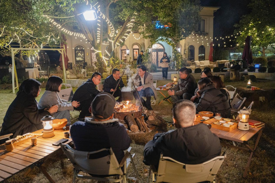 鸬鸟镇的百姓们“围炉话家常”。新华网发 杭州市余杭区委宣传部供图