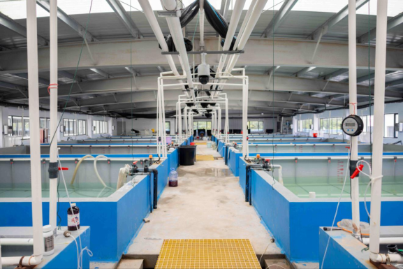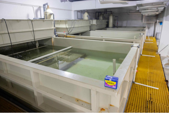 24个培育池内,增氧系统、温度调节阀等传感装置实时采集着水体温度、盐度、溶氧量、ph值等理化因子。每口池子的上方,装有水下摄像头,以便研究人员随时查看蟹宝宝各阶段生长状况。