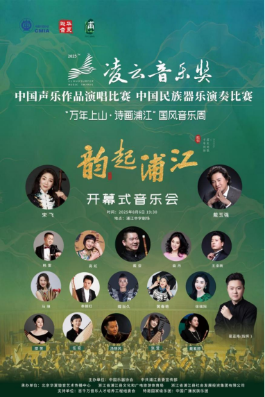 8月2日至10日,由中国乐器协会、浦江县委宣传部共同主办的2025“凌云音乐奖”中国声乐作品演唱比赛及民族器乐演奏比赛将在浙江省金华市浦江县举行,开幕式音乐会由中国广播民族乐团和著名歌唱家、演奏家合力呈现。同期“万年上山·诗画浦江”国风音乐周也将以多场主题音乐会、雅集、研学等丰富多彩的音乐活动喜迎海内外国风音乐爱好者广泛参与。