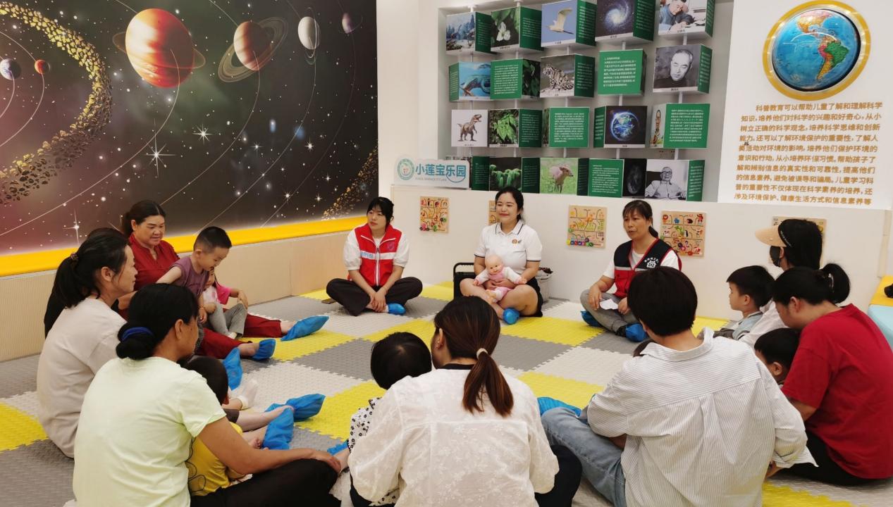 走进灵山社区新时代文明实践站,“小莲宝乐园”托育角格外引人注目,宝宝爬垫、游戏桌、防护栏构成了一片游乐天地。该托育角积极联合莲都区卫生服务中心、枫树湾卫生院、辖区内的“123托育”专业机构以及社会组织“丽水市三优孕妈公益社”,定期开展育儿讲座、亲子互动、健康咨询等多样化活动。这种多方联动的模式,不仅提升了服务的专业性,也为年轻父母提供了科学育儿的指导和支持,有效缓解了“带娃难”的焦虑。